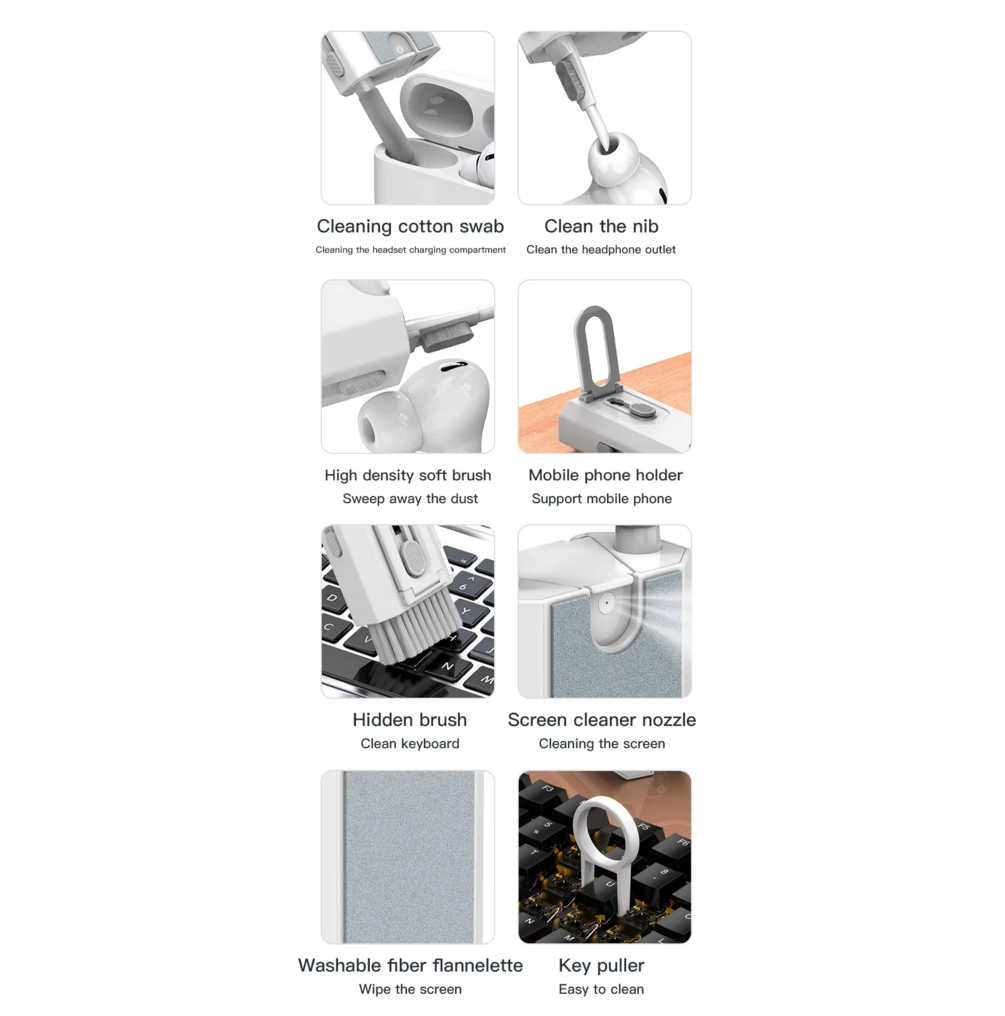 • 🎧 Precision Cleaning Pen: Ideal for cleaning earbuds, headsets, and small crevices.